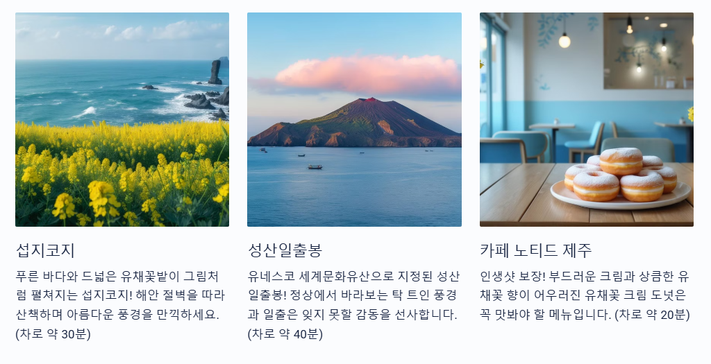 ✔ 날씨 체크 필수 – 제주 날씨는 변덕스러우므로 우천 시 대체 일정 계획 필요