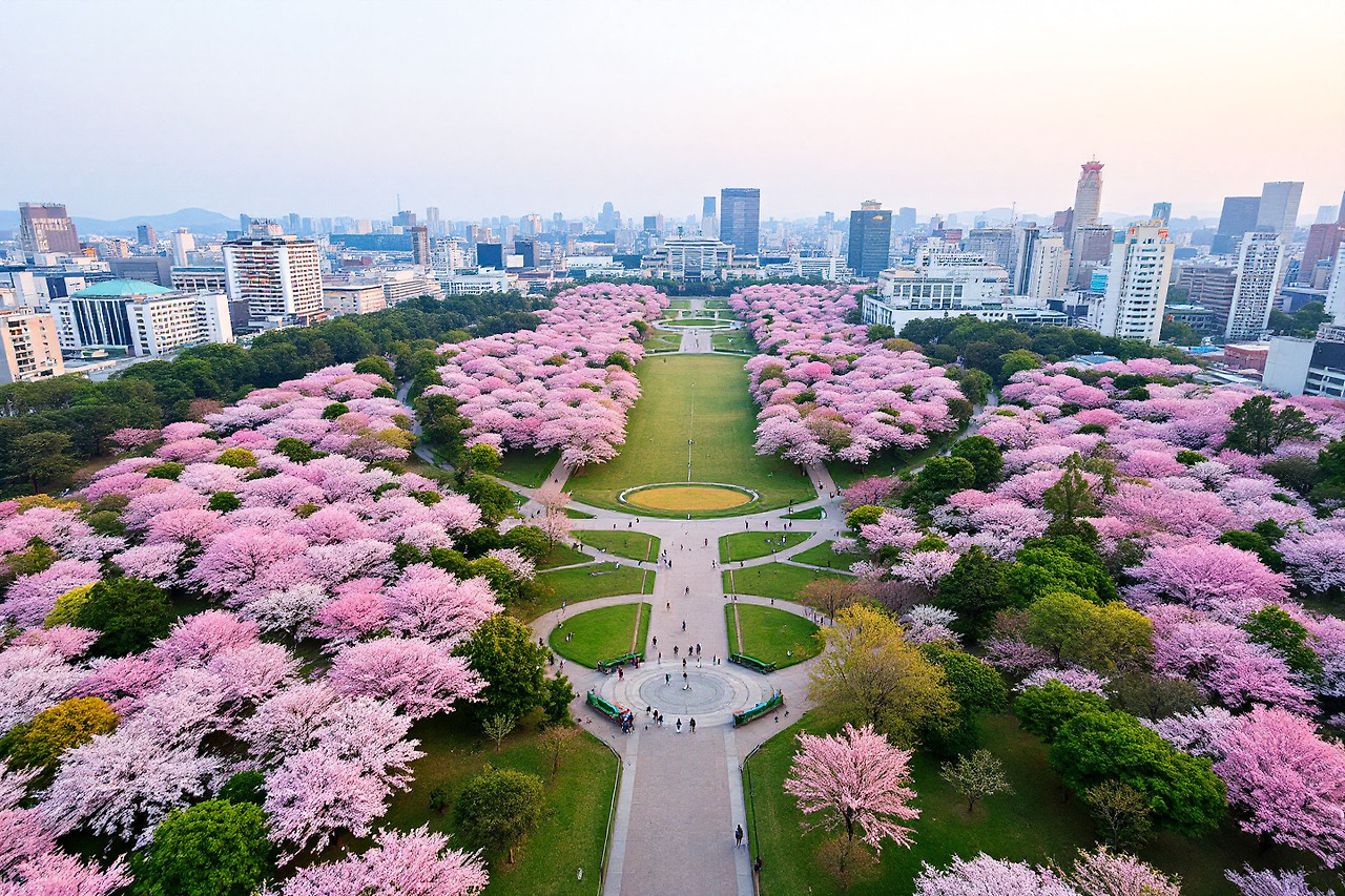 1970년 오사카에서 열린 '만국박람회(EXPO)'를 기념해 조성된 공원으로, 동서 자연문화원과 일본정원 주변에 벚꽃 터널이 형성되어 사진 촬영 명소로 유명합니다. 특히 '태양의 탑' 주변의 벚꽃길이 압권입니다.