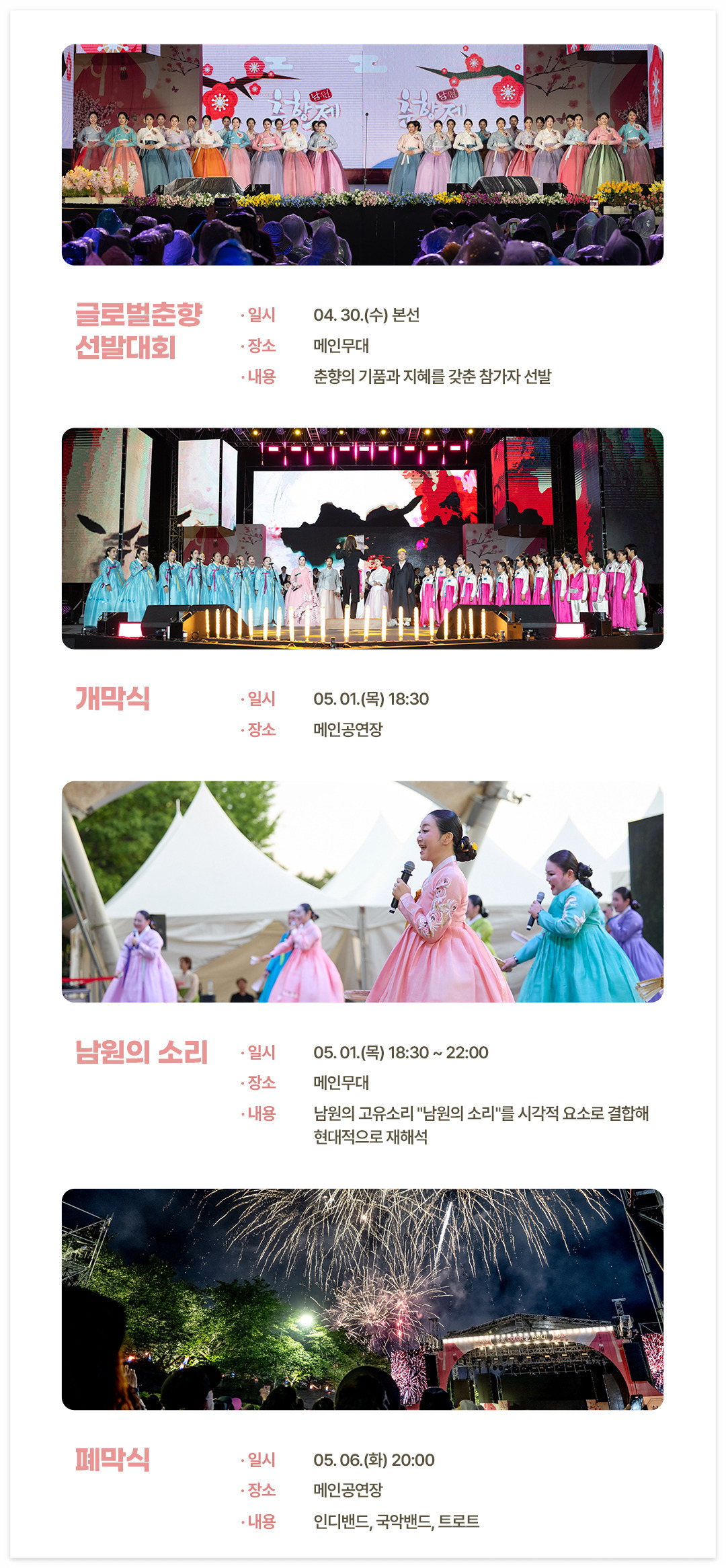 - 🎎 춘향선발대회 : 국내외 참가자가 함께하는 글로벌 행사