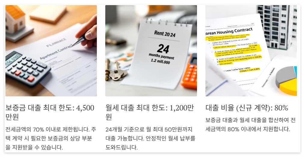 | 보증금 대출 | 4,500만원 | 전세금액의 70% 이내 |
